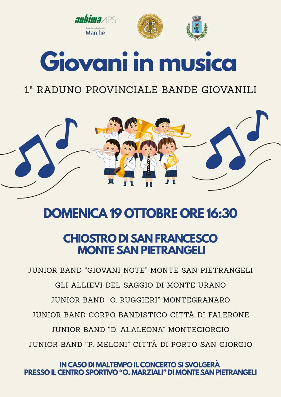 Domenica 19, alle ore 16.30 presso il chiostro dei Frati, si svolgerà il primo raduno di Junior Band della provincia di Fermo.